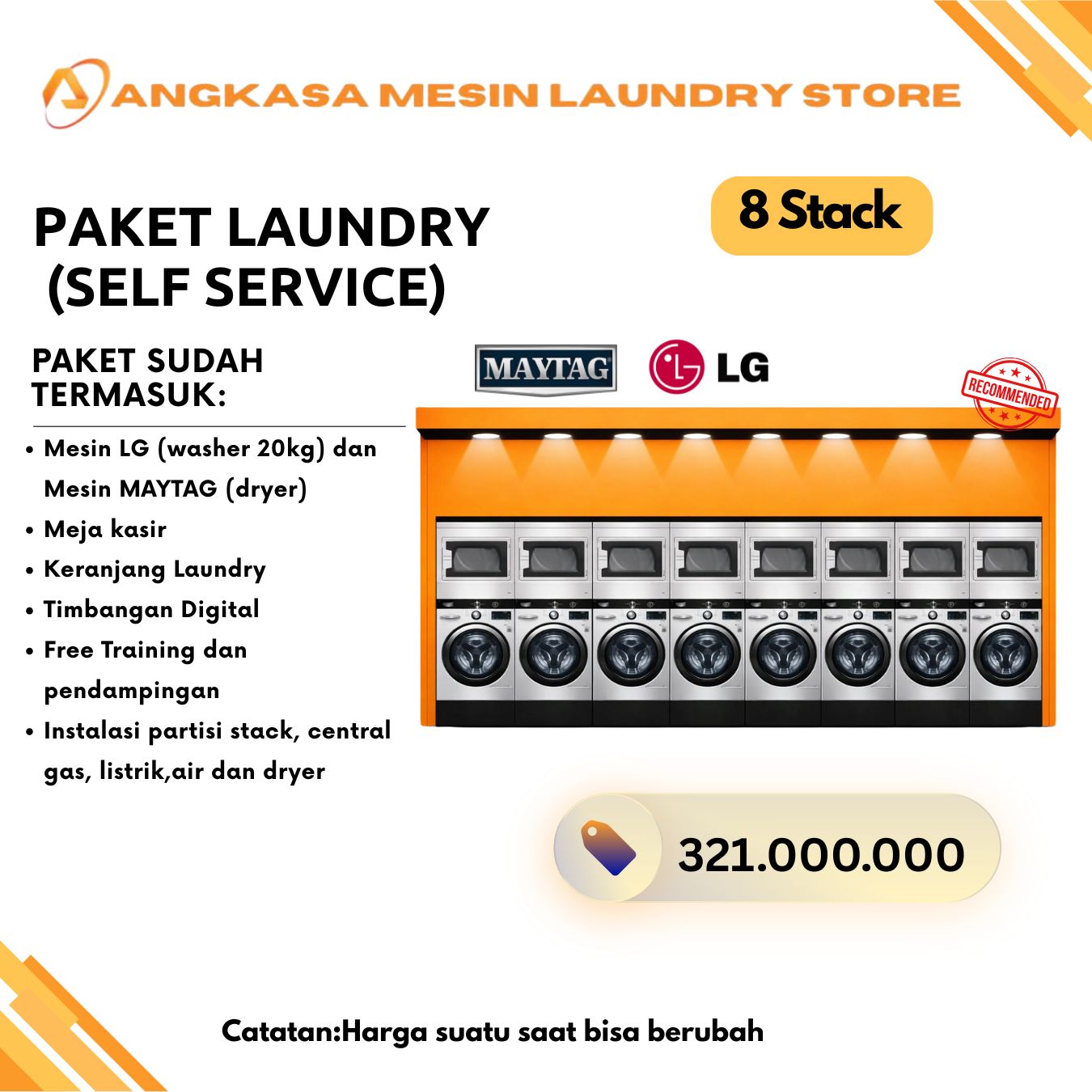 Angkasa Mesin Laundry Store menawarkan produk laundry premium, termasuk paket mesin laundry siap pakai, mesin pengering bergaransi, deterjen, dan perlengkapan laundry premium lainnya.