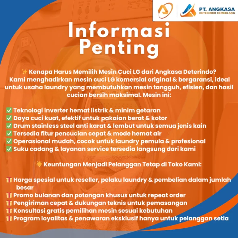 Cocok digunakan untuk usaha laundry profesional, hotel, guest house, hingga rumah tangga dengan kapasitas cucian besar setiap hari.